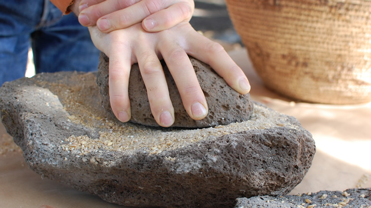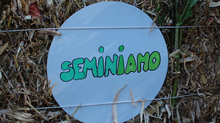 Il laboratorio era organizzato secondo le tre fasi: semina dei chicchi, macinatura e fare il pane con la semola e la farina.