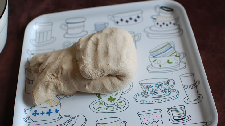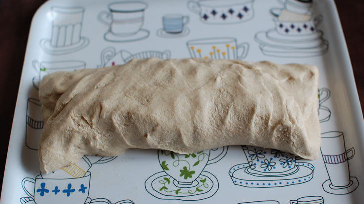 Iniziare a incorporare l’acqua a poco a poco. Una volta incorporata, coprire l’impasto con un panno umido, lasciare riposare un ora o più, facendo attenzione che non ci siano correnti di aria fredda e che l’impasto rimanga a una temperatura costante.
